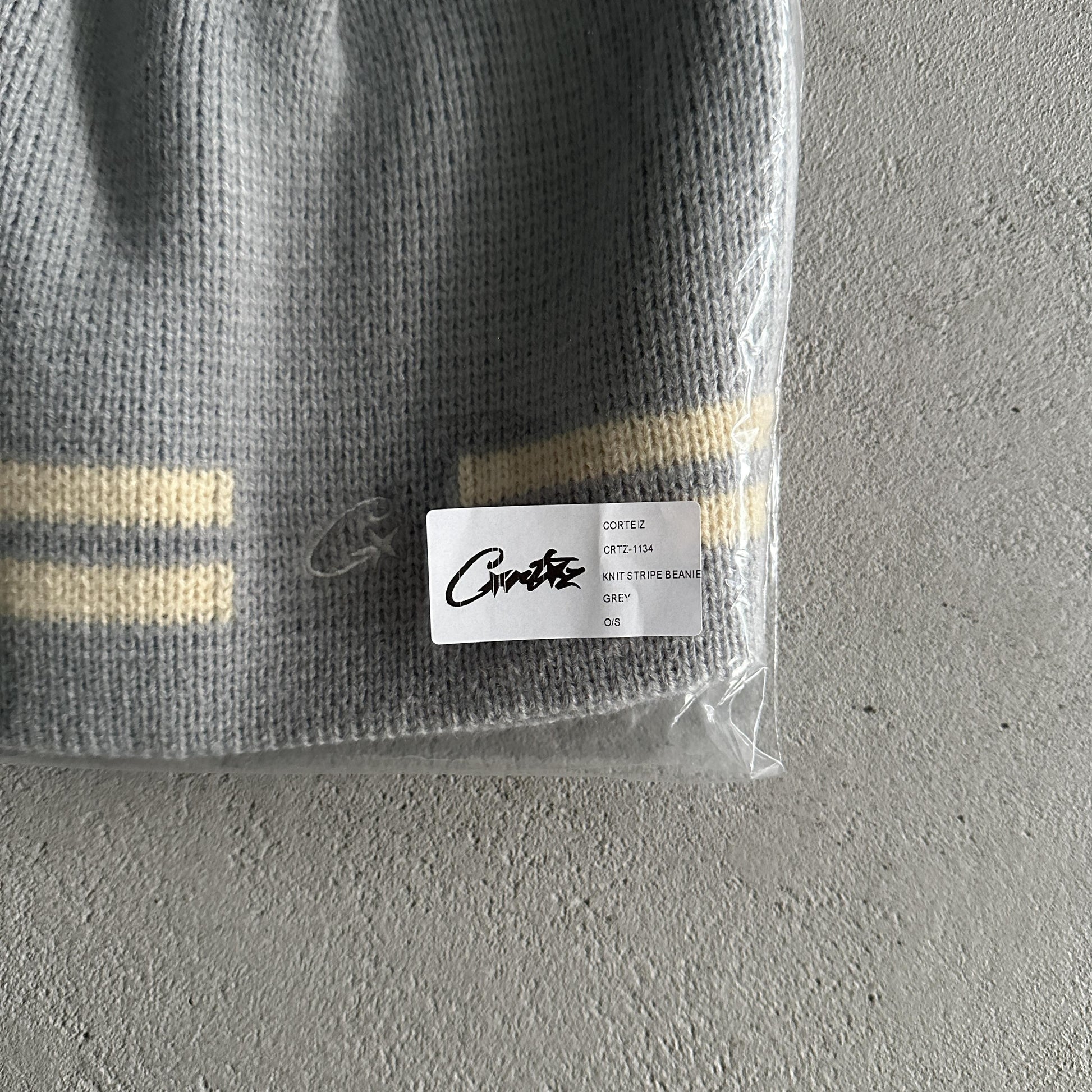 Corteiz Strickmütze mit Streifen – Grau